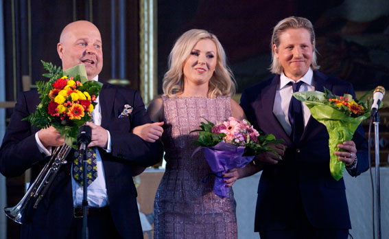 ![]() Elisa Lindström i Kvidinge kyrka Elisa, Magnus och Marcos – en gudabenådad trio i Kvidinge kyrka Kvidinge 160410 Det var efterlängtad gäng för kvidingeborna som lyssnat på Magnus och Marcos två gånger tidigare, även då i arrangemang av Kvidinge Hembygdsförening. Publiken var redan väl förtrogen med deras kända yrkesmässiga varumärken med personliga kvalitetsstämplar – Magnus som trumpetare och Marcos som musikarrangör, orkesterledare och pianist – båda även kända TV-ansikten. Men för den stora TV-publiken slår nog Elisa herrarna med en häst längd i kändisskap p.g.a. hennes aktuella medverkan i ”Let´s Dance”, där hon briljerat med en dansbegåvning utöver det vanliga. 24-åriga Elisa visade på en förbluffande scensäkerhet och trygghet. De flesta hade nog inte heller anat Elisas breda röstregister, nyanserade tolkningar av såväl klassisk musik som folkvisa, pop och kända filmintron. Inte heller att hon var en hejare på trumpet… – Vi föds och vi dör. Lev fullt ut in i det sista. Var och en har sin plats, sin väg, inledde hon bl.a. innan filmtemat ur ”Såsom i himlen”. Var och en och tillsammans lyckades de nå oanade musikaliska höjder som borrade sig djupt in även i en mycket luttrad själ. Magnus Johansson som även gav prov på en bärig bra basröst, djupt ned i underlandet i ”I was born under a wandering star” och i hans egen ”I love Europe”… – En skåning svettas när han äter, fryser när han jobbar! Frös gjorde inte dessa eminenta musiker när de belönades med flera minuter långa stående ovationer efter välförrättat värv. |