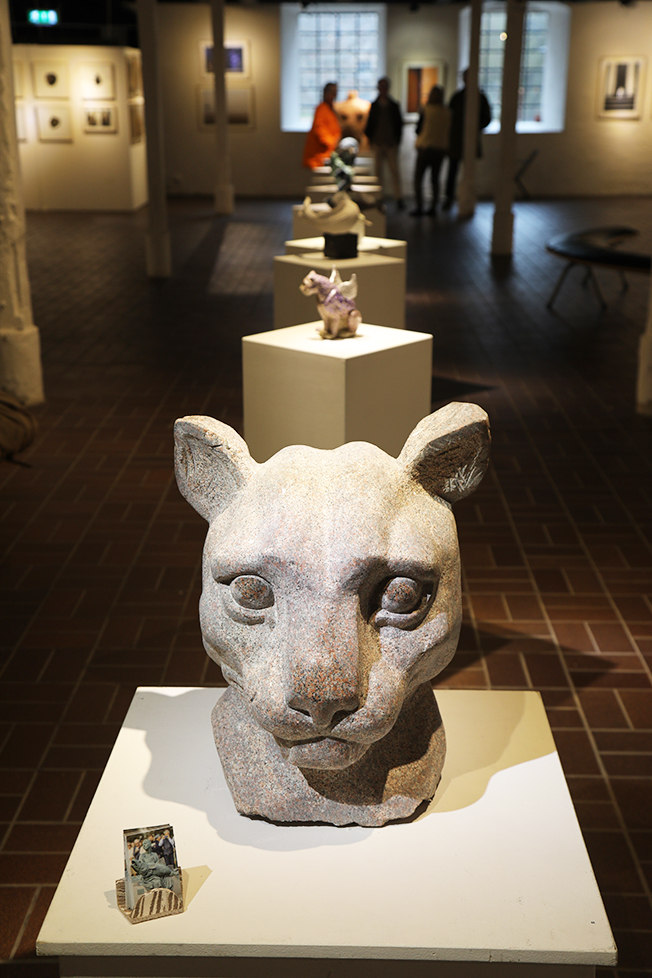 Det blir som små stationer att göra stopp vid kring rundvandringen, där Sara Stenlunds alltid lika klassiska men underfundiga skulpturer presiderar. Saras skulpturer lyfter helheten.