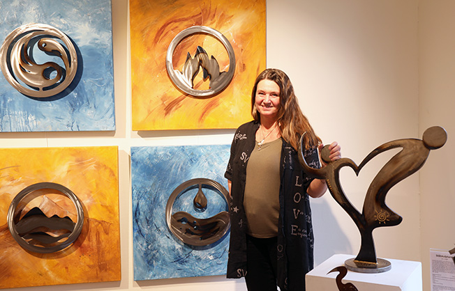 En upplevelserik, sprakande färgstark värld med oväntade överraskningar och uppstickare i såväl bildverk som skulpturer, väntar besökaren på Höganäs kulturhus.